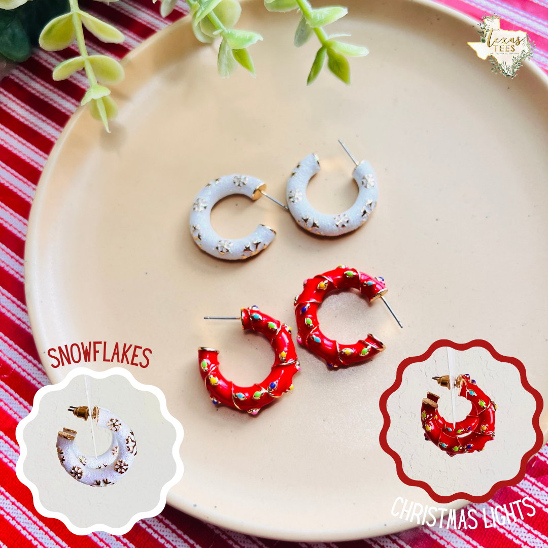 Enamel Christmas Hoop Earrings