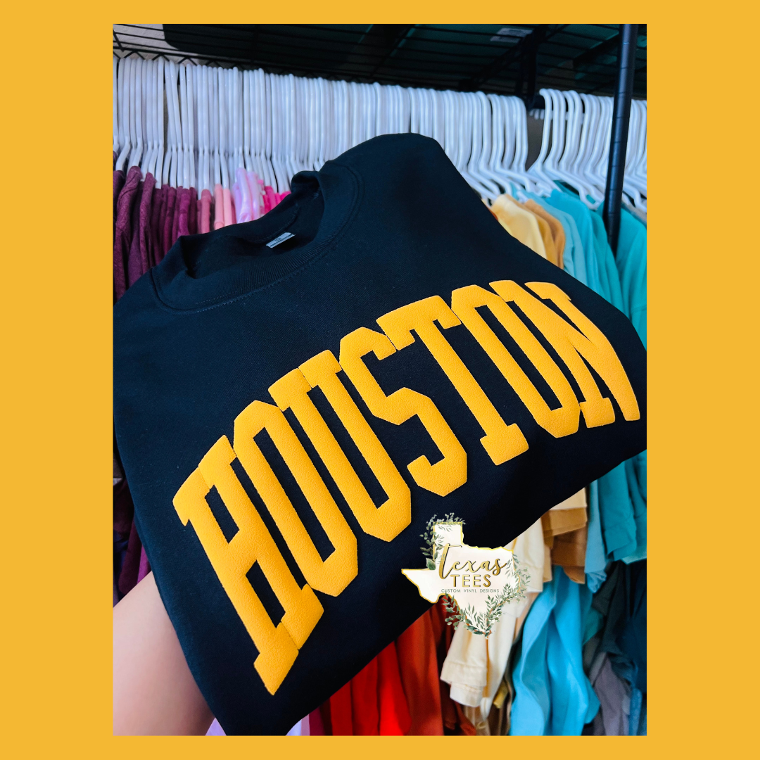 Houston Puff Design - Mustard on Black